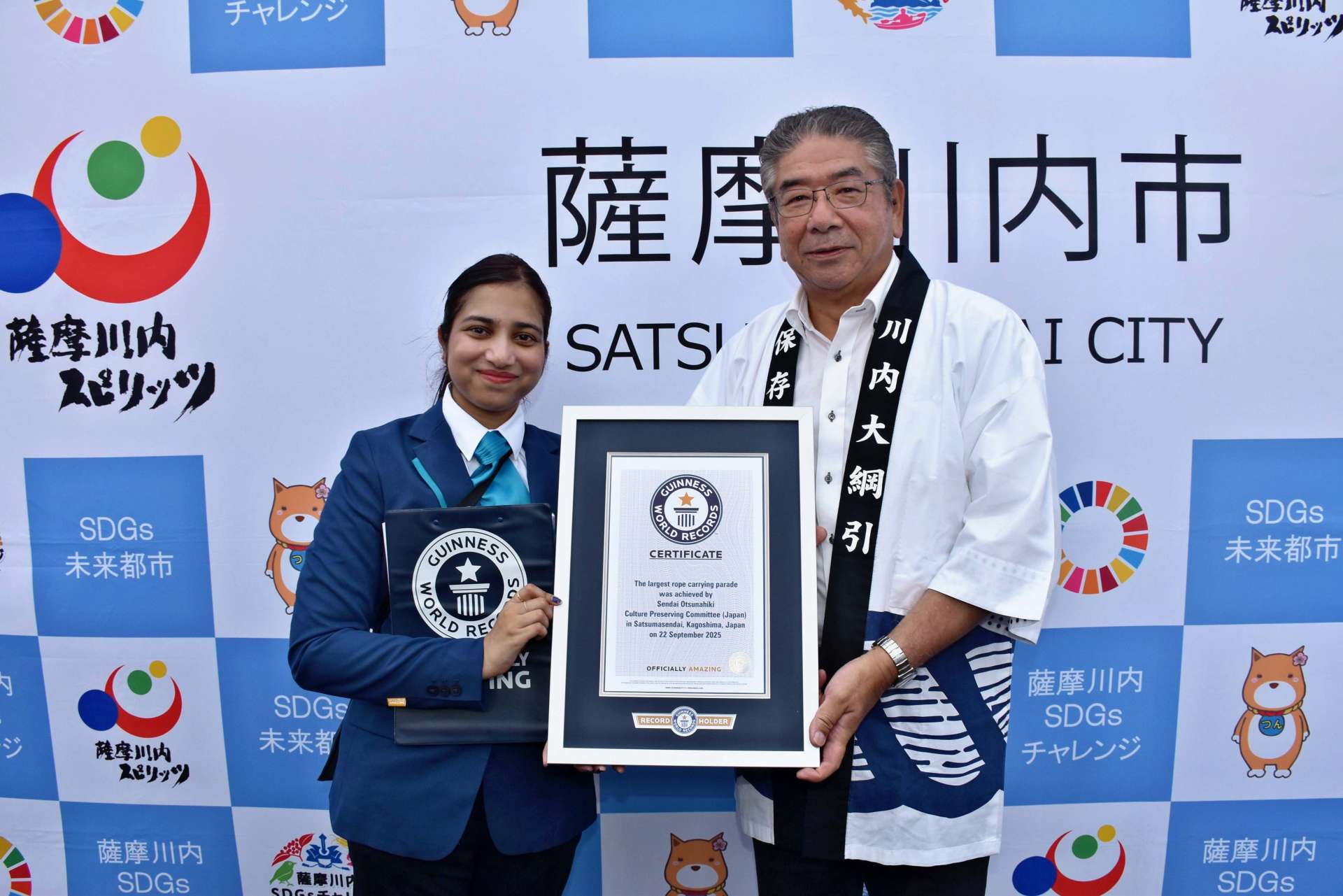 今年は「大綱を100M運ぶ人数の多さ」ギネス記録にチャレンジし、無事成功しました!
